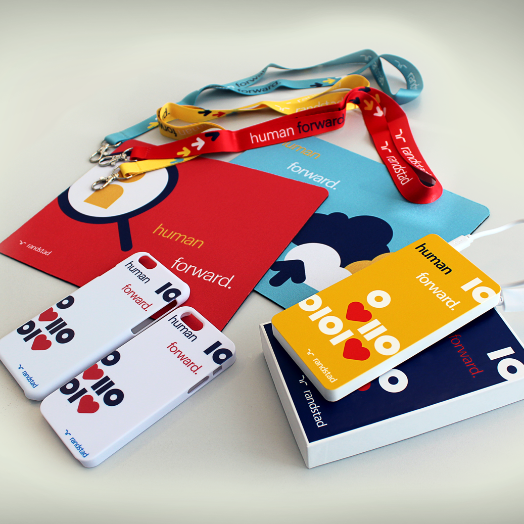 Jeg har hjulpet Randstad med at implementere designet bredt over hele organisationen bl.a. ved at lave firmagaver, roll-ups, handouts, mapper, jobopslag og meget mere.